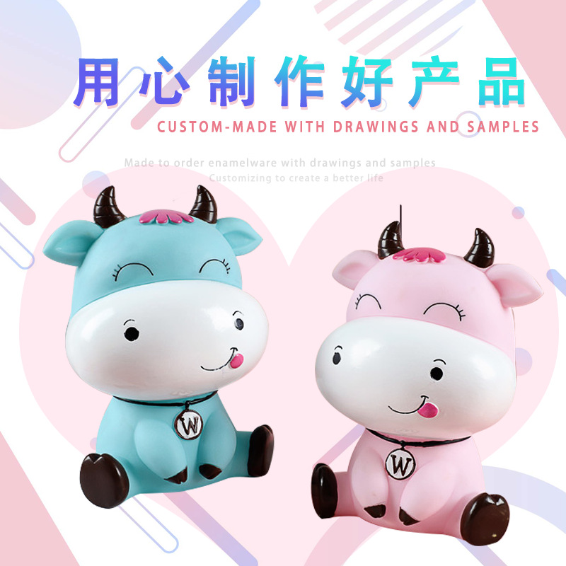 可愛卡通牛吉祥物定制 牛年樹脂擺件